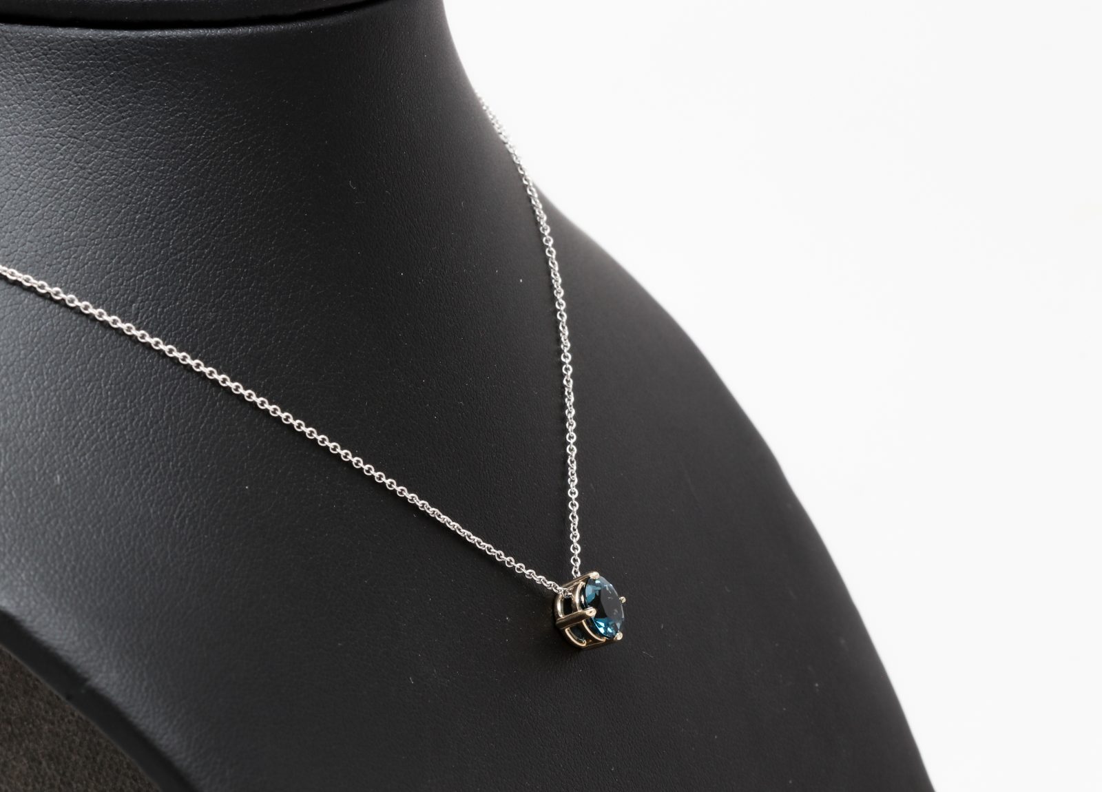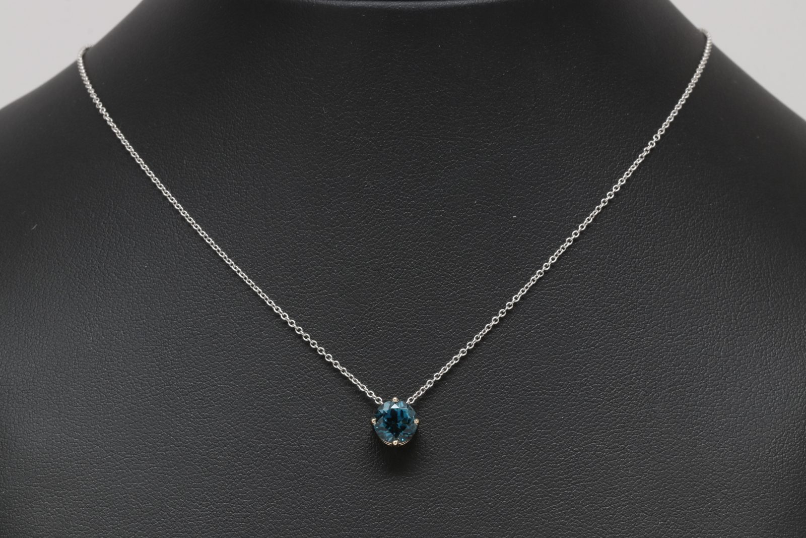 Fresh and radiant, this 18-inch slide necklace is crafted in 14 karat white gold and features a stunning 1.61 carat round blue topaz. The vibrant sky-blue hue of the topaz is beautifully enhanced by the cool brilliance of white gold, creating a crisp and luminous look. Designed in a sleek slide style for effortless elegance, this necklace offers a timeless pop of color perfect for everyday wear or special occasions.