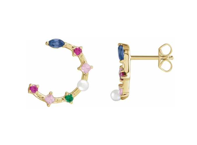 2 – Emeralds 0.06ctw, 2 – pearls, 4 – Pink Tourmaline 0.12ctw , 4 – Ruby 0.05ctw