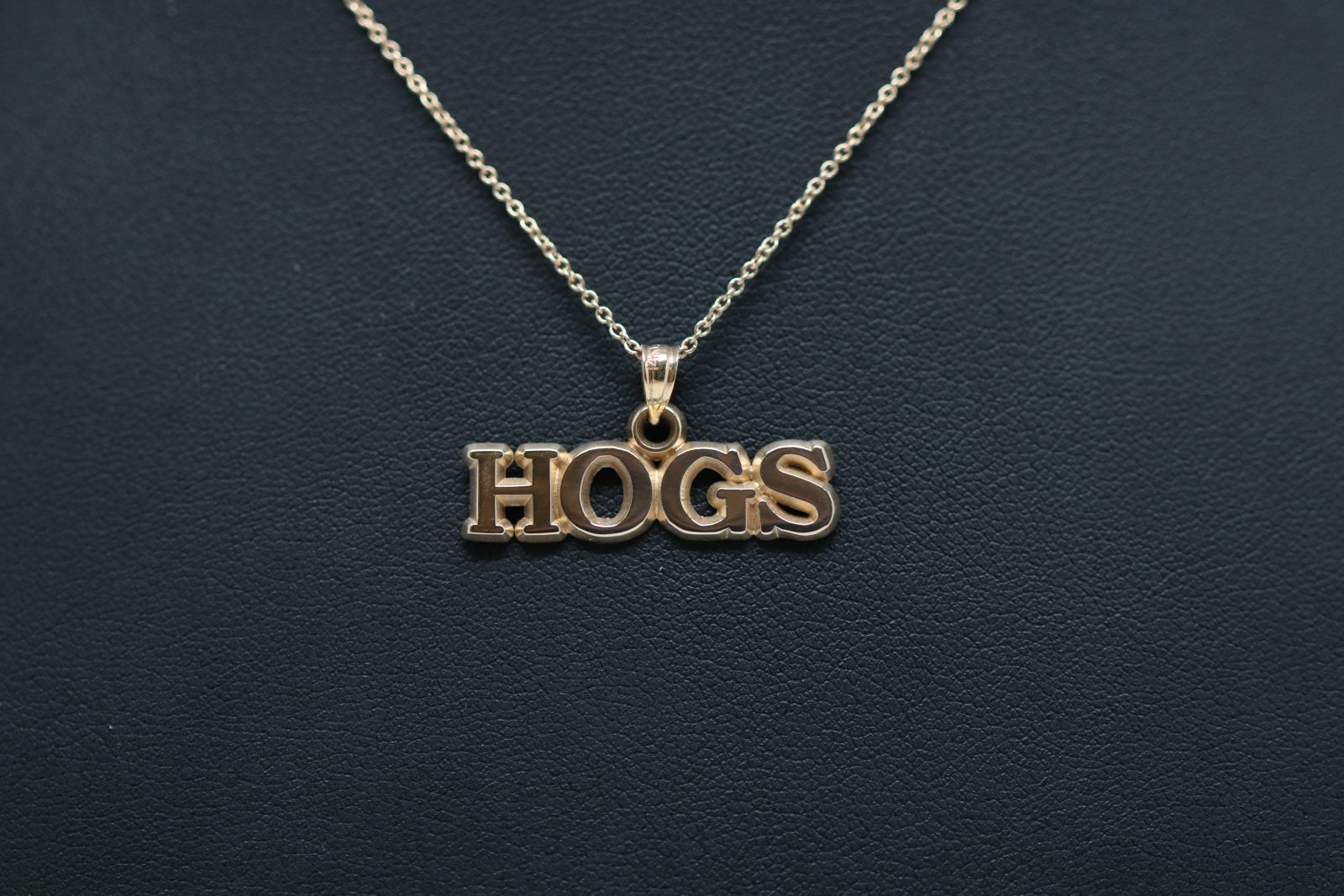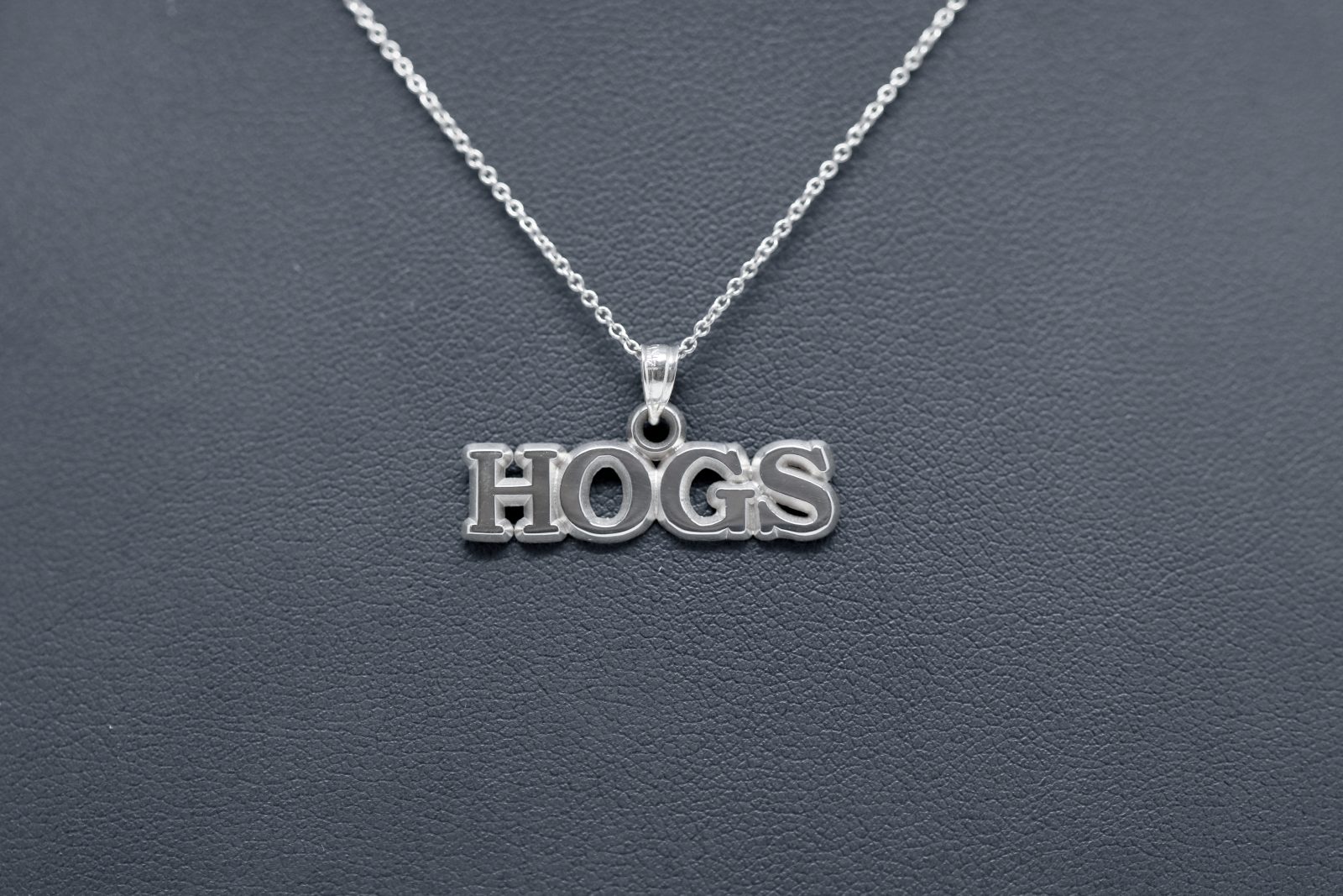 This HOGS pendant looks great with Razorback Red and will work for Game Day or any day!
